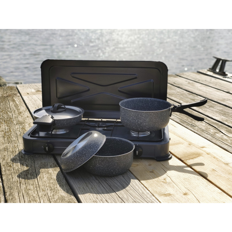 Fabriqué à 99.5% à partir d’aluminium, conducteur thermique efficace qui répartit rapidement la chaleur pour un gain d’énergie et une cuisson uniforme !