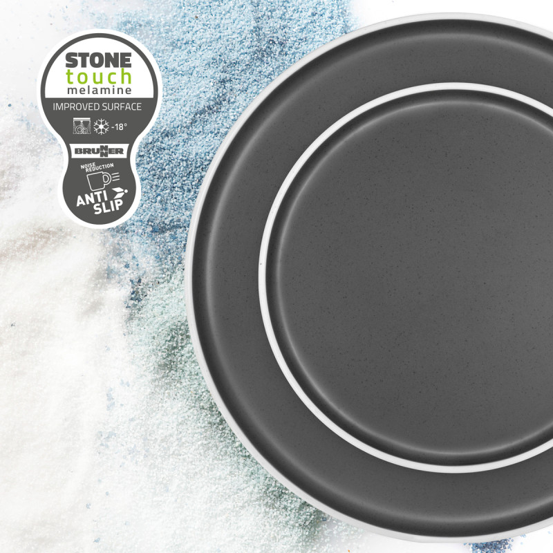 Conçu en StoneTouch, la vaisselle DOLOMIT est un mélange innovant de résine de mélamine et de minéraux, il combine légèreté, robustesse et élégance. Son fini soyeux rappelle le toucher de la porcelaine, tout en garantissant une grande résistance aux chocs.