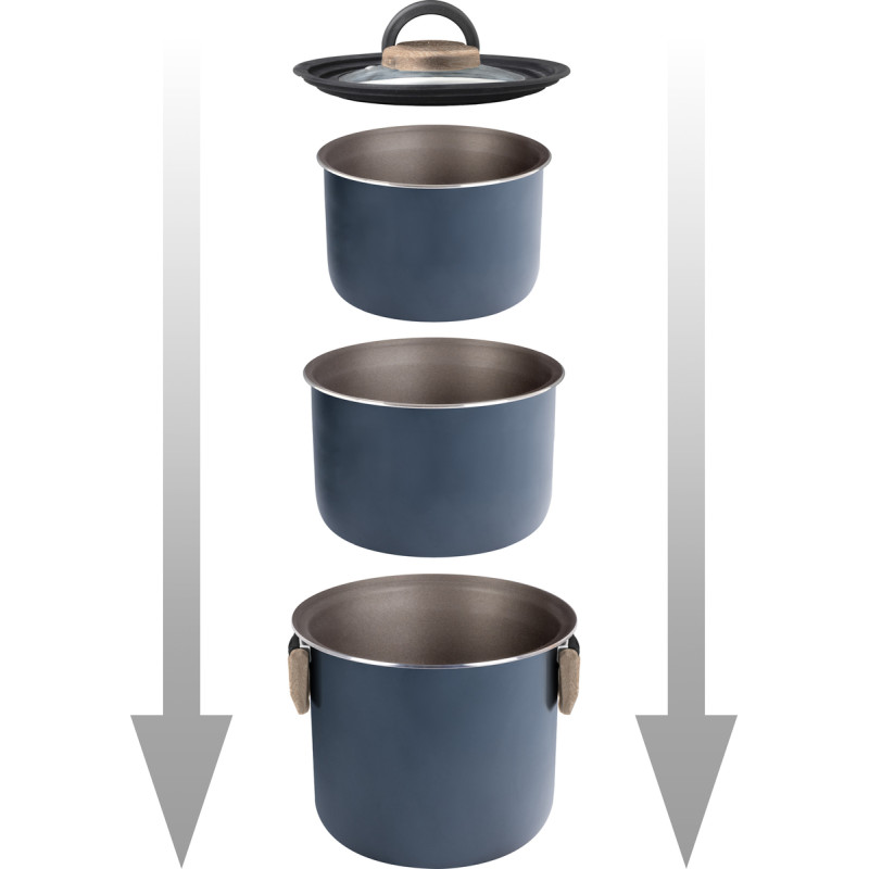 Conçue spécialement pour les cuisinières de taille réduite, cette batterie offre un rapport surface/volume optimisé, idéal pour préparer aussi bien de petites portions que des plats plus généreux. Son système d’empilage ingénieux permet un gain de place maximal sans compromis sur la praticité.
