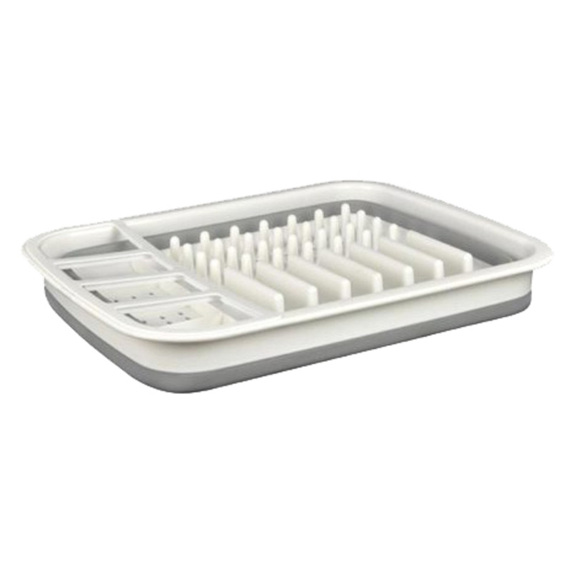 Egouttoir à vaisselle 5 compartiments. Astucieux et très pratique, cet égouttoir dépliant permet d’égoutter les verres, couverts et assiettes. Très compact une fois replié : 5 cm d’épaisseur plié. Dimensions : 38 x 29,5 x 12 cm
