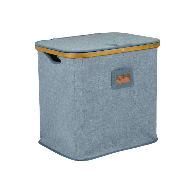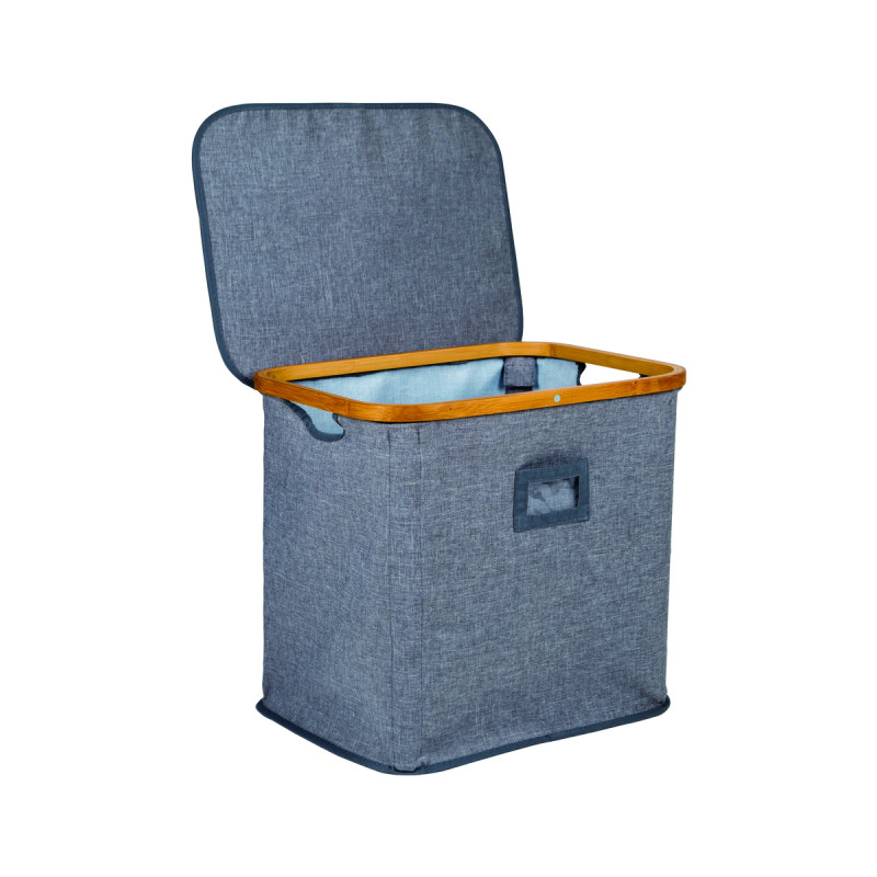 Ce panier qui possède une structure en bambou est en tissu polyester aspect lin.