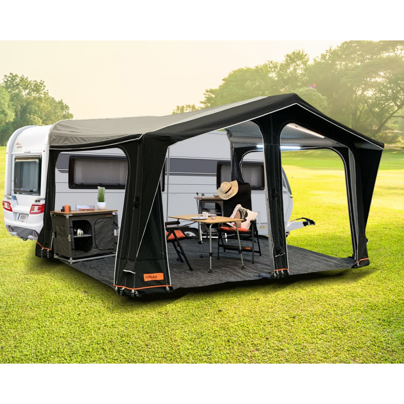 Avec ses 2,70 m de profondeur et sa structure gonflable en 1 point, le Zinnia Air allie confort, fiabilité et simplicité. Sa conception modulaire et sa toile technique en font un modèle idéal pour les séjours prolongés.