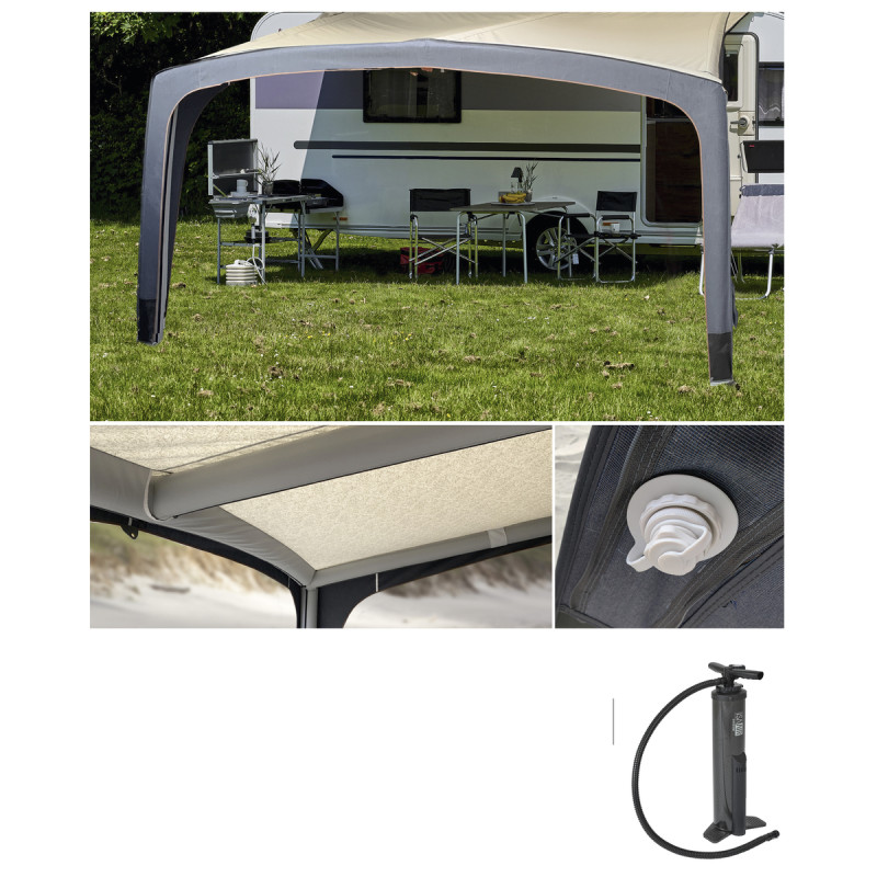 Isabella Air Arc se compose exclusivement de canalisations à air et d'une toile de toit, et se gonfle à un seul endroit avec la pompe à air Isabella Air fournie.