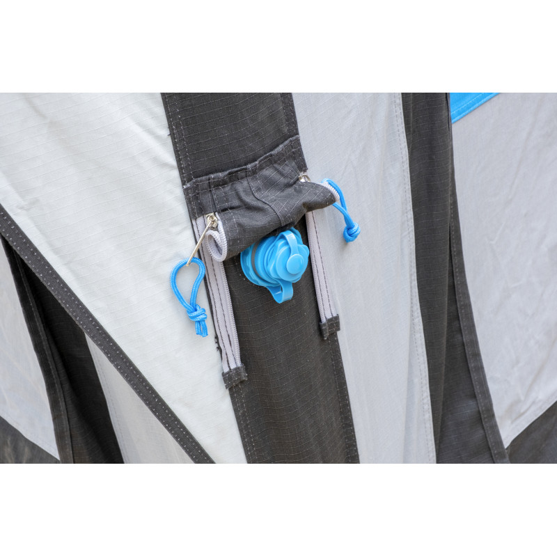Fournitures incluses : pompe à air, piquets, cordes d’ancrage, sac de transport
