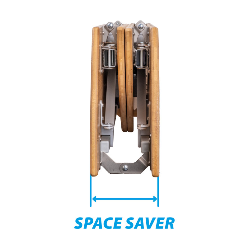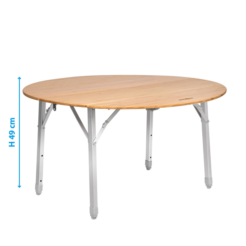 Table ronde pliante, conçue pour le camping, le van ou les repas en extérieur. Son plateau en bambou ajoute une touche naturelle et élégante, tandis que le châssis en aluminium la rend légère, stable et facile à transporter. Elle se replie de façon compacte pour un rangement ou transport simplifié.