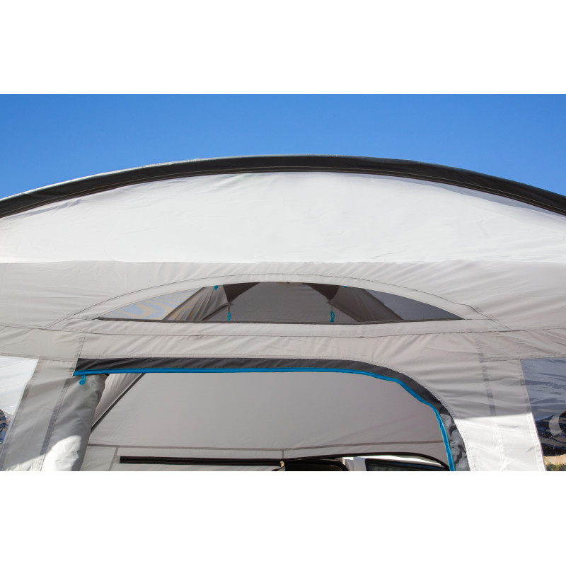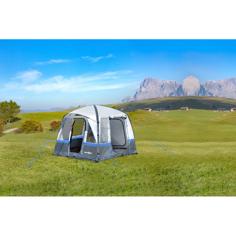 L’Indipendence est un auvent autoportant conçu spécialement pour être installé depuis l’ouverture du hayon ou de la porte arrière de votre minibus ou fourgon. Son armature gonflable innovante permet une installation rapide sans piquets traditionnels. Il se fixe au véhicule via un tunnel de connexion adapté.