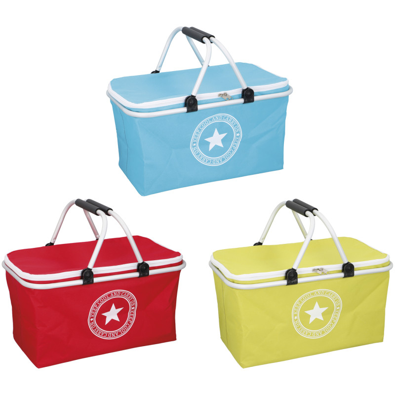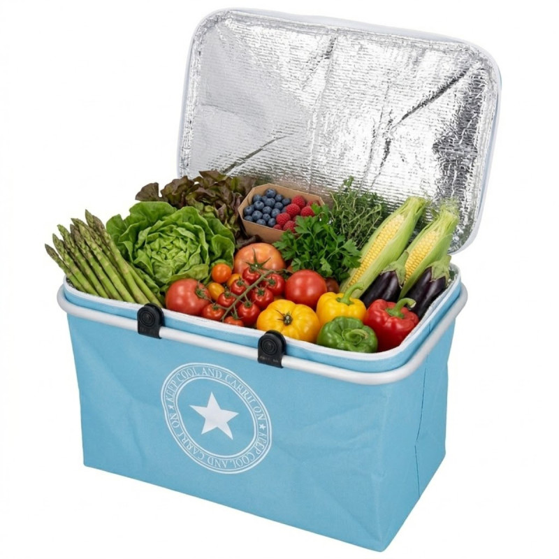 Glacière 25L pliable avec une apparence simple et élégante, une fermeture à glissière double, facile à plier pour le rangement et à porter avec un revêtement doux sur les deux poignées.