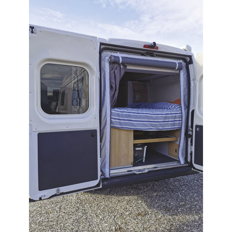 Le thermoback est une protection arrière pour van ou fourgon. Constitué d’une moustiquaire et d’un isolant multicouche amovible, Soplair Thermoback est un accessoire double fonctions indispensable pour votre confort. Grâce à son complexe isolant il vous protègera des fortes chaleurs en été et du froid en hiver. Son opacité, protègera votre intimité. Si vous enlevez la couche isolante, vous disposerez alors d’une véritable moustiquaire. Vous pourrez en été ventiler votre véhicule. La moustiquaire est équipée d'une fermeture éclair permettant l’accès à votre soute.