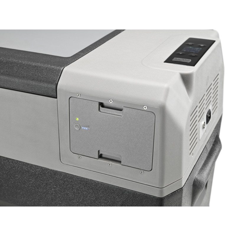 La batterie au lithium de 173 Wh prend 4 à 6 heures pour se recharger complètement et maintient le réfrigérateur en marche (à 0°C) jusqu’à 10 heures.