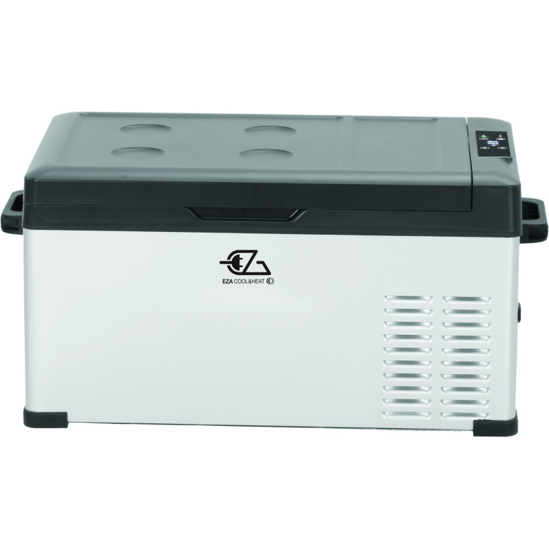 La glacière idéale pour les baroudeurs ! Refroidissement et congélation performants (+20°C à -20°C), quelle que soit la température extérieure. Alimentation 12/24V DC ou 230V (adaptateur en option), interface LCD pour contrôle facile, port USB intégré. Construction métal robuste, nettoyage facilité par le bouchon de vidange. Couvercle avec renfoncement pour verres et plat, renforts latéraux, modes Max/Eco et poignées de transport.