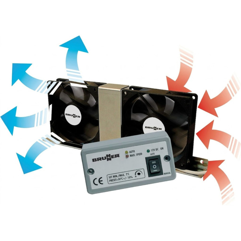 Double ventilateur 12V pour réfrigérateur à vitesse variable réglée par palpeur thermique. Fourni avec panneau de commande.