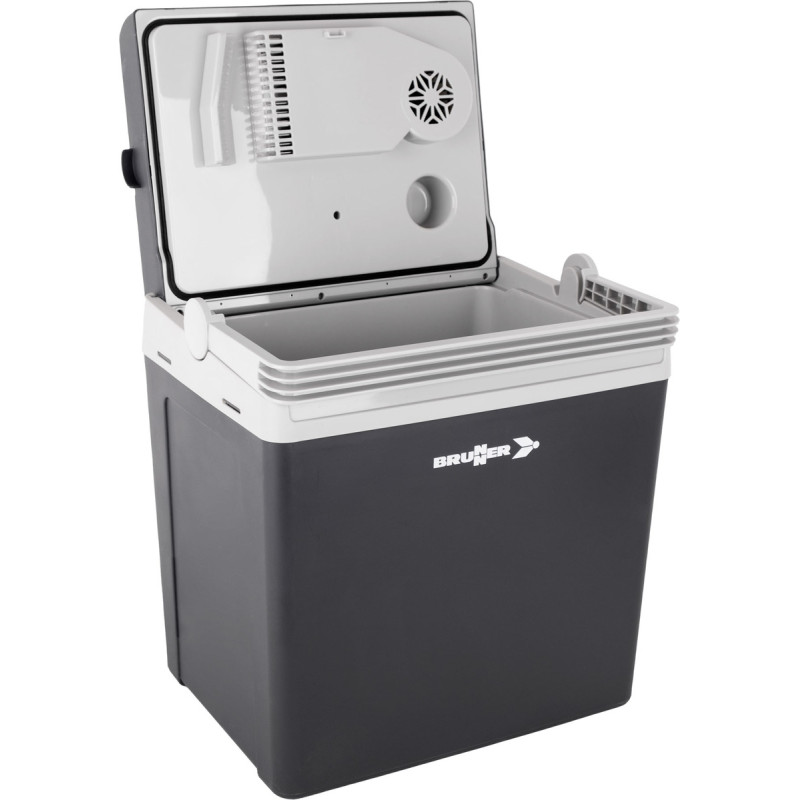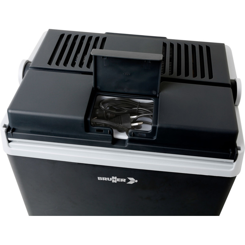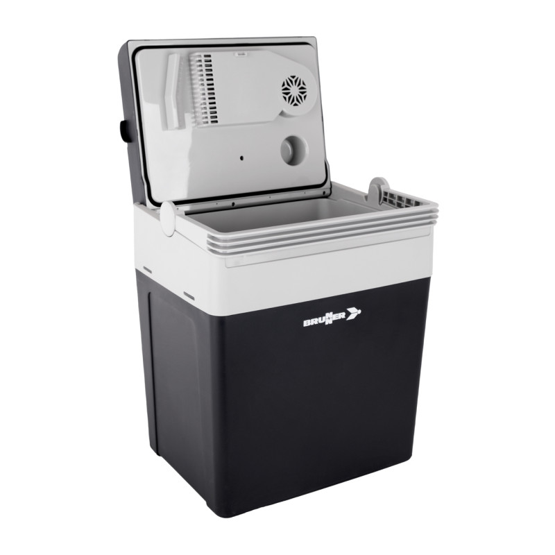 Glacière thermoélectrique (système Peltier), alimentée par l'allume-cigare 12V DC ou secteur 240V AC.