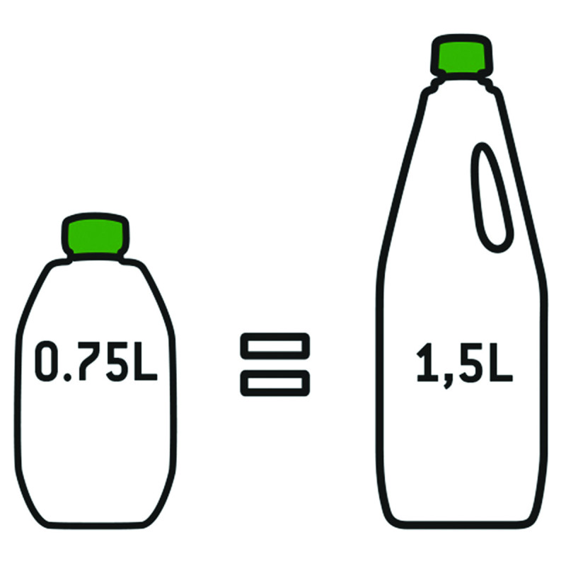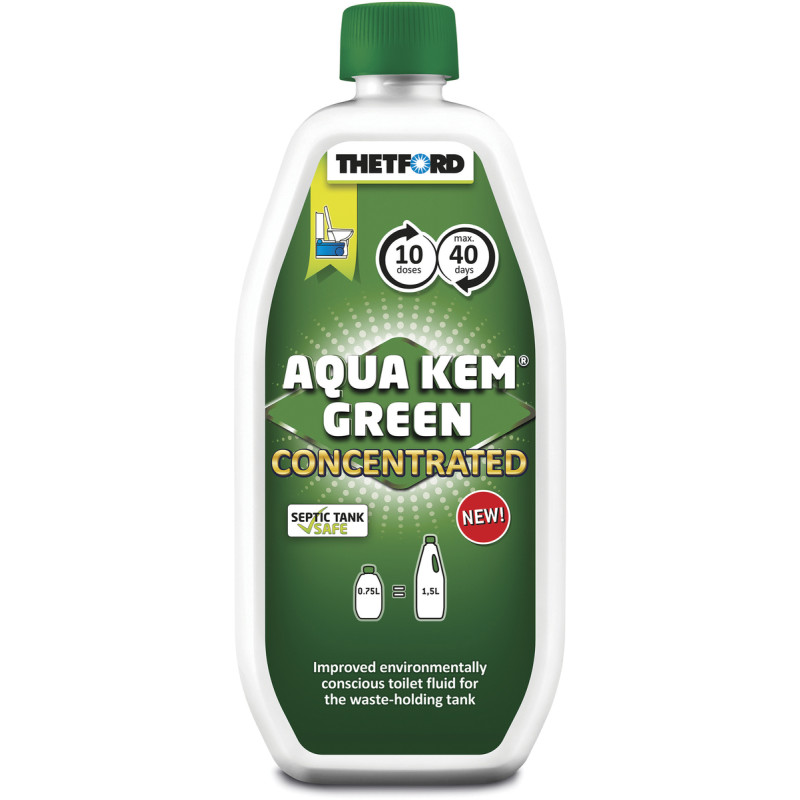 Une bouteille d’Aqua Kem Blue Concentrated de 0,78 L offre jusqu’à 13 doses pour 65 jours d’utilisation, soit l’équivalent d’une bouteille d’Aqua Kem Blue de 2 L.