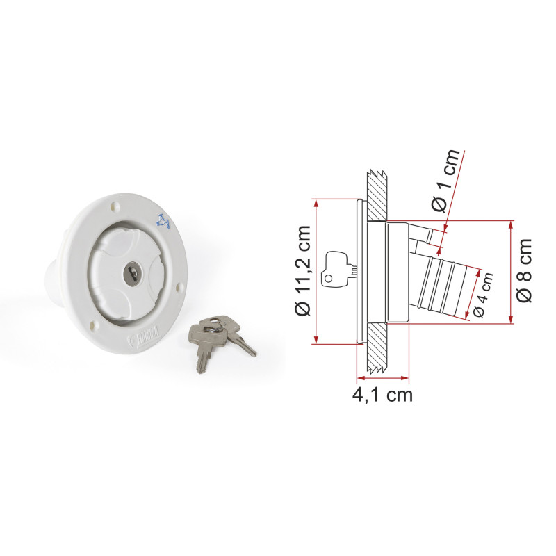 Bouchon à clé pour réservoirs pour eaux propres et/ou eaux usées.