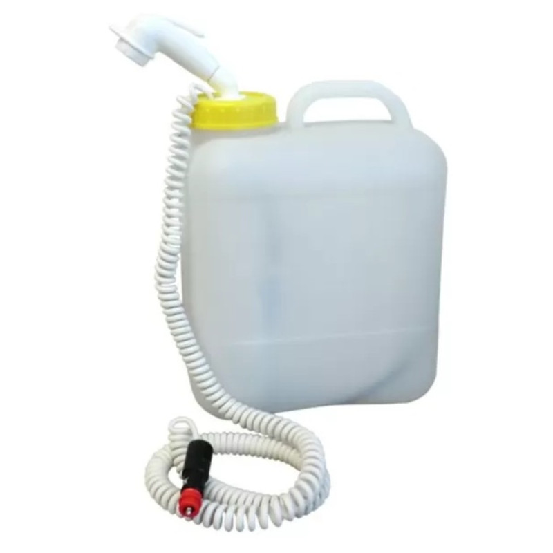 Kit complet comprenant une pompe submersible, un tuyau flexible en polyamide, une douchette réglable et un adaptateur pour bidon avec bouchon Ø 80 mm (DIN 96).