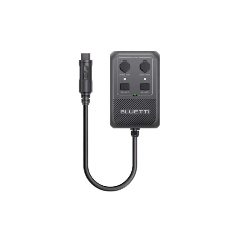 Le Bluetti Hub D1 est un concentrateur de puissance DC pour l’Apex 300. Il propose une puissance maximale de 700 W avec des sorties variées : port Anderson 50 A, USB-C, USB-A, prises allume-cigare et DC5521. Il permet d’alimenter directement plusieurs appareils en courant continu.