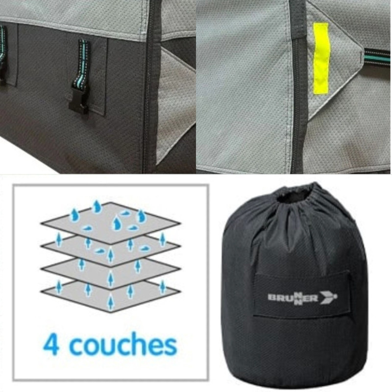 - Équipé de fermetures éclair latérales permettant un accès pratique au véhicule lorsqu’il est couvert.