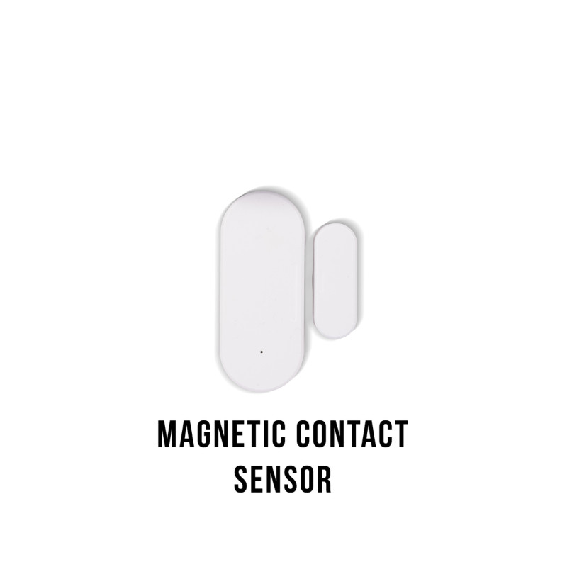 2 contacts magnétiques sans fil : surveillent l’ouverture des portes et fenêtres via un protocole sécurisé.