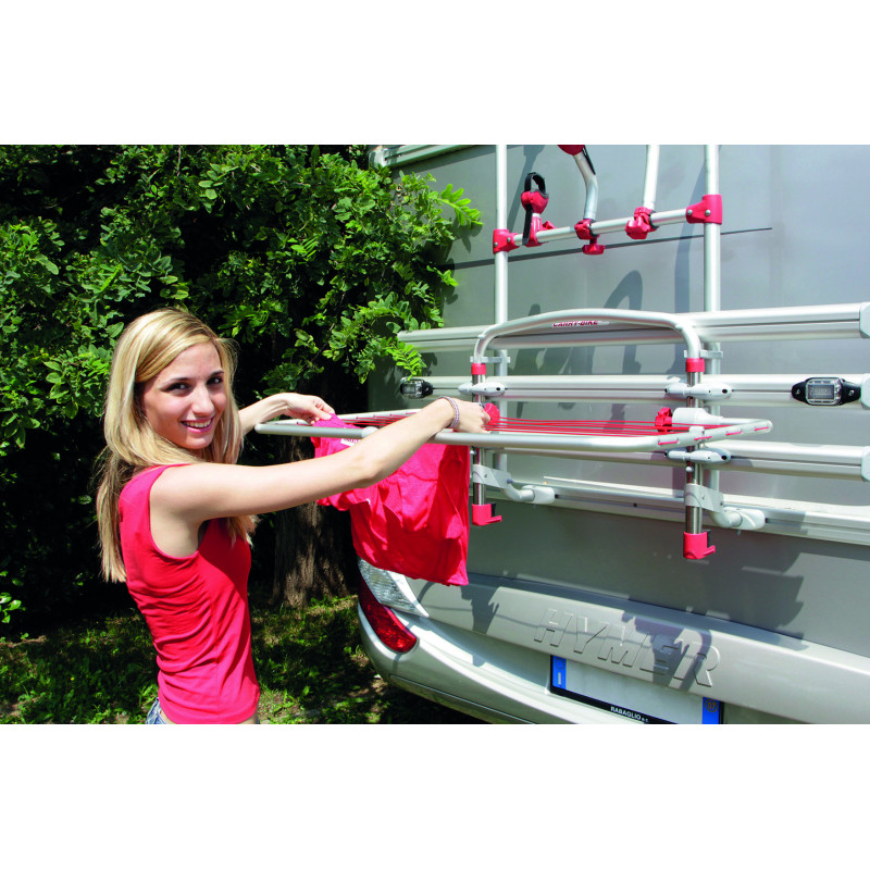 L’étendoir Easy Dry est conçu pour s’installer facilement sur le support de rails de la plupart des porte-vélos arrière, sans perçage. Parfait pour les camping-cars, vans ou fourgons aménagés, il allie robustesse, légèreté et praticité.