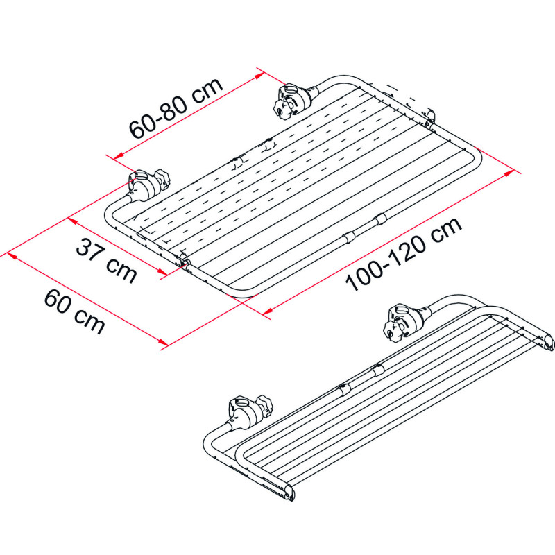 Idéal pour les séjours en plein air, l’Easy Dry permet d’optimiser l’espace à l’extérieur de votre véhicule tout en profitant du soleil pour sécher vos vêtements.