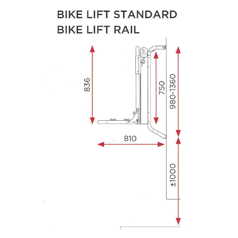 Équipé d’un moteur 12V avec interrupteur, le système de levage offre une amplitude de 110 cm. Installé sur la plupart des véhicules, sa plateforme peut être abaissée au niveau du sol, ce qui évite de soulever les vélos et facilite leur positionnement.