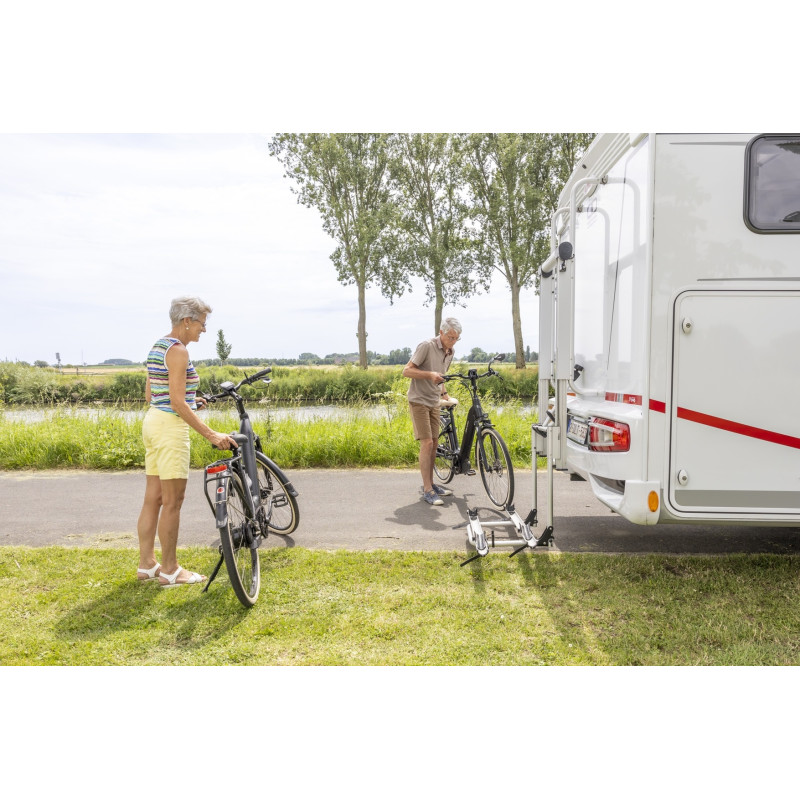 La capacité maximale est de 60 kg, ce qui permet de transporter 3 vélos classiques ou 2 e-bikes. Le porte-vélos pèse 20 kg.