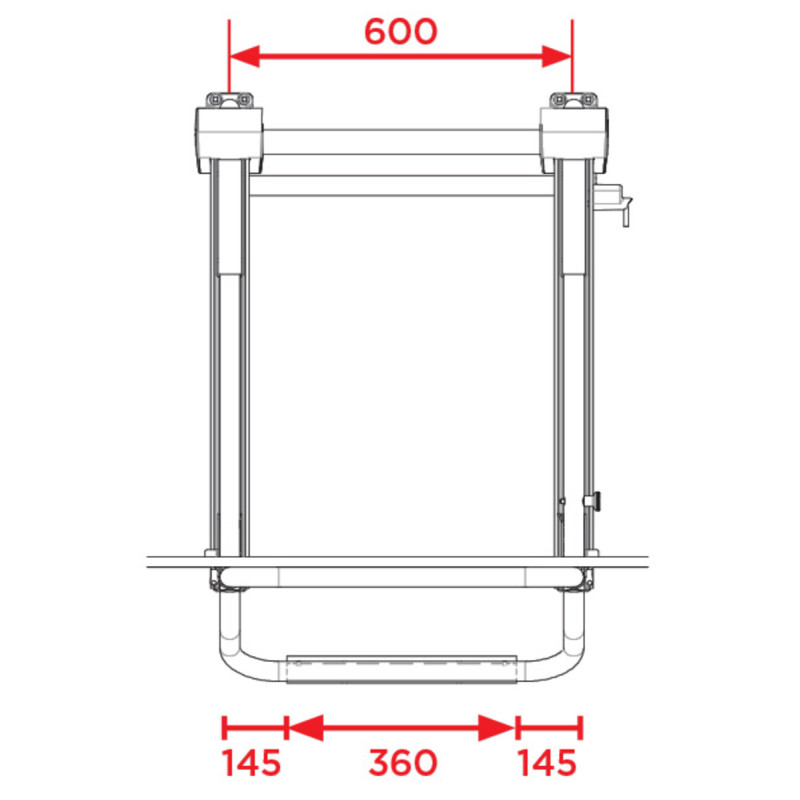 Équipé d’un moteur 12V avec interrupteur, le système de levage offre une amplitude de 110 cm. Installé sur la plupart des véhicules, sa plateforme peut être abaissée au niveau du sol, ce qui évite de soulever les vélos et facilite leur positionnement.