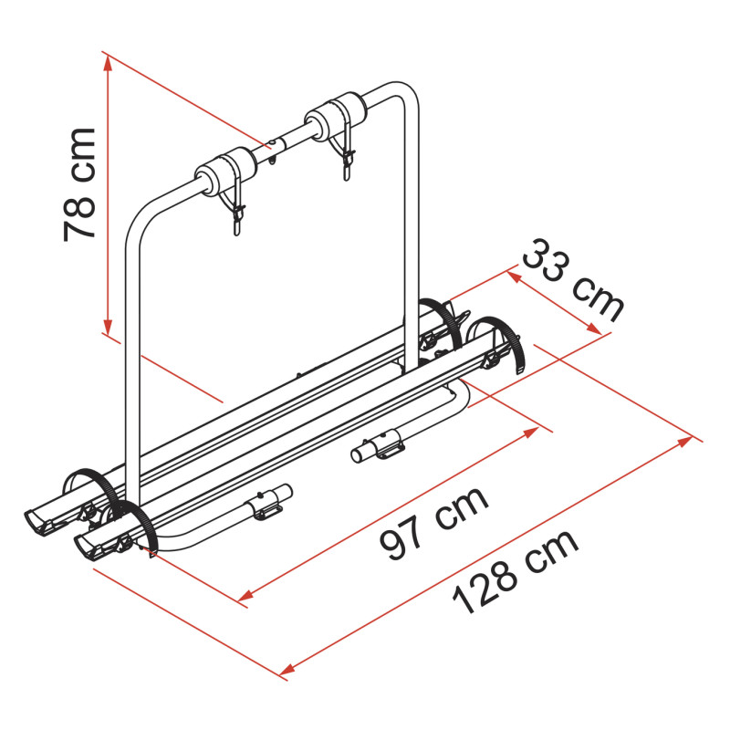 Compact et bon marché, le seul porte-vélos s’adaptant aux caravanes avec flèche standard, aux modèles HOBBY avec flèche large et aux châssis AL-KO.
