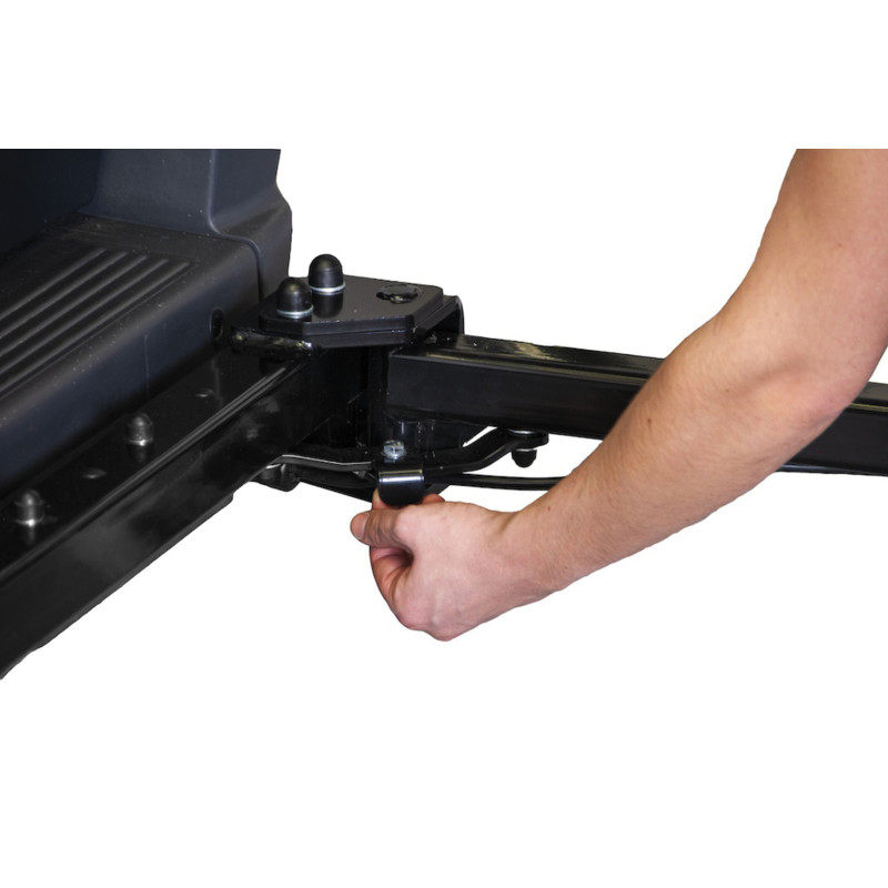 Le support est monté sur le châssis et non sur les charnières des portes arrière. C'est idéal pour les vélos électriques car ils sont placés à hauteur de genou.