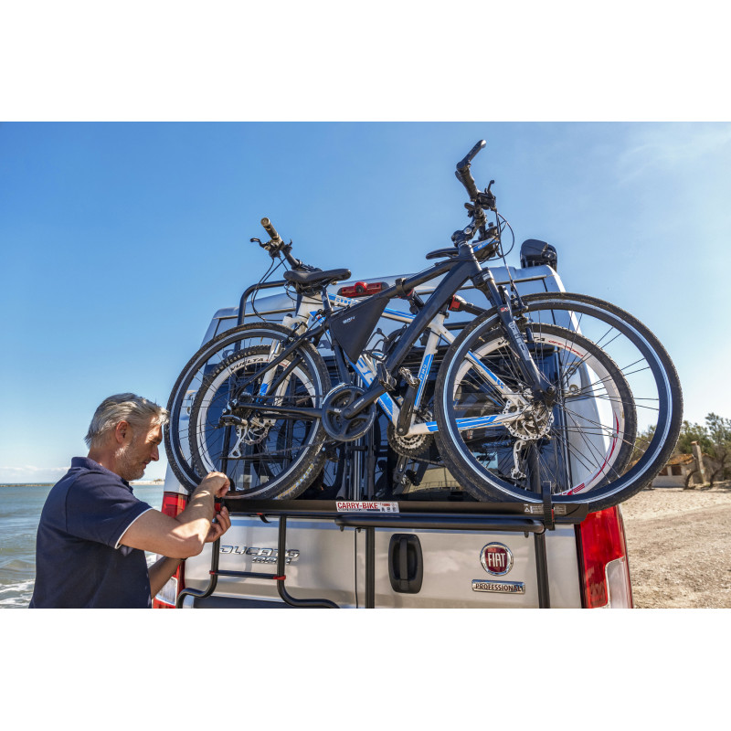 Un seul porte-vélos pour tous les modèles et barres de fixation conçues pour répondre aux exigences de tous les véhicules (Ducato, Sprinter, Crafter et Transit), vendus séparément.