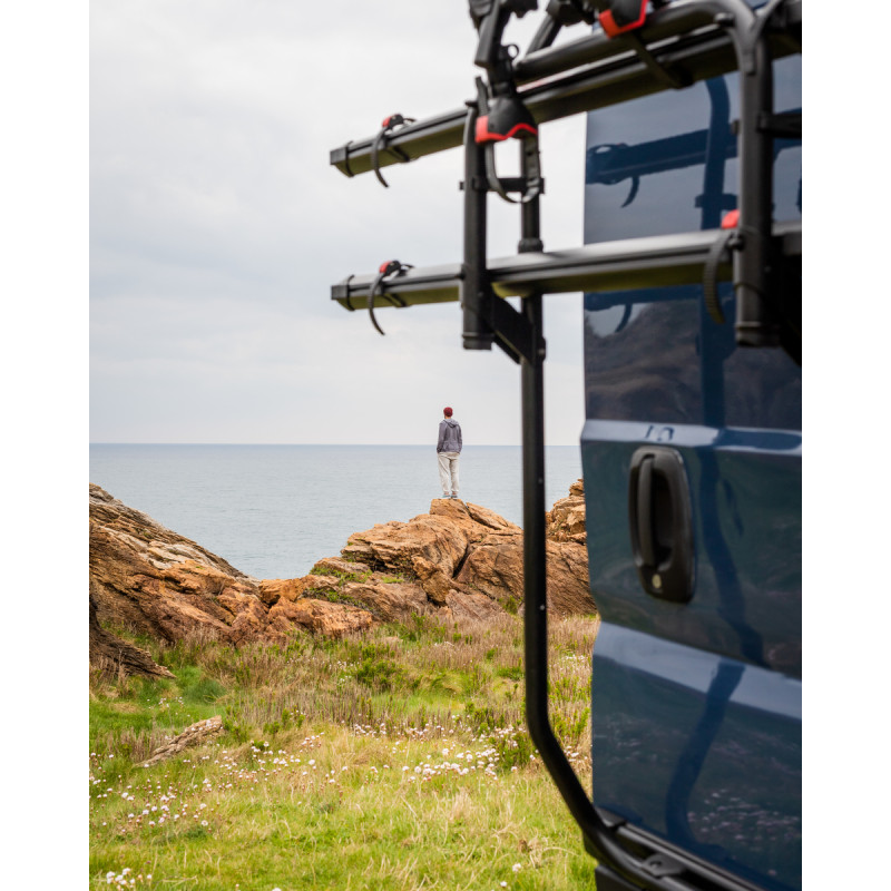 Un seul porte-vélos pour tous les modèles et barres de fixation conçues pour répondre aux exigences de tous les véhicules (Ducato, Sprinter, Crafter et Transit), vendus séparément.