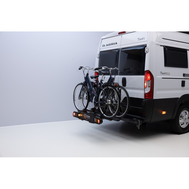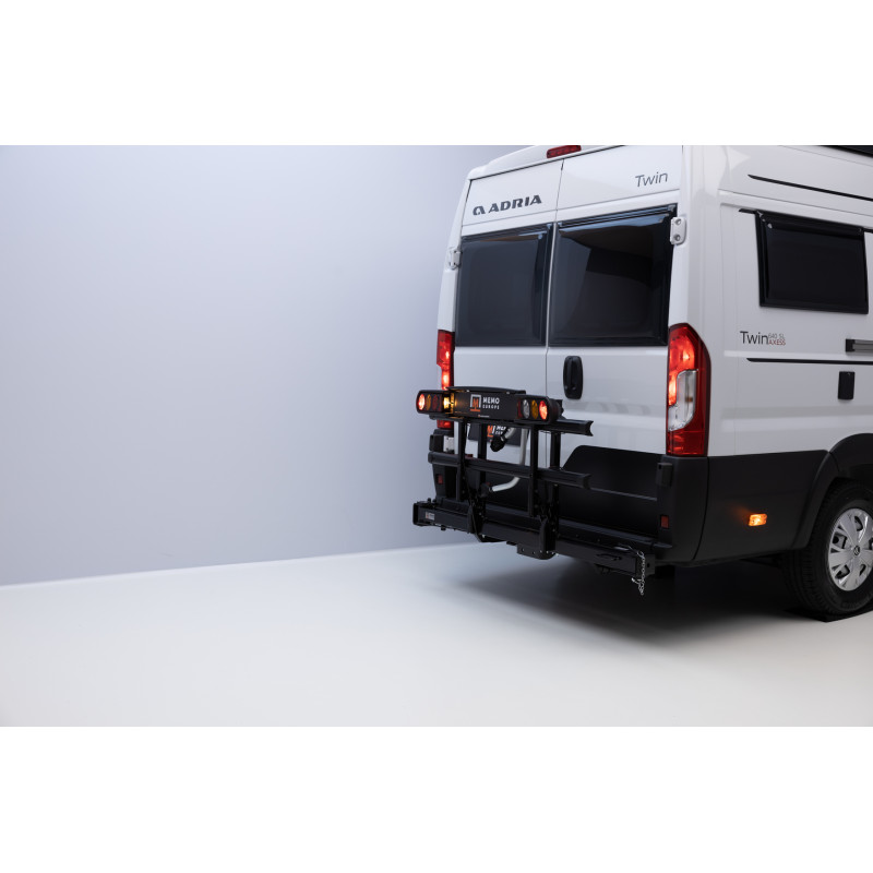 Le support est monté sur le châssis et non sur les charnières des portes arrière. C'est idéal pour les vélos électriques car ils sont placés à hauteur de genou.