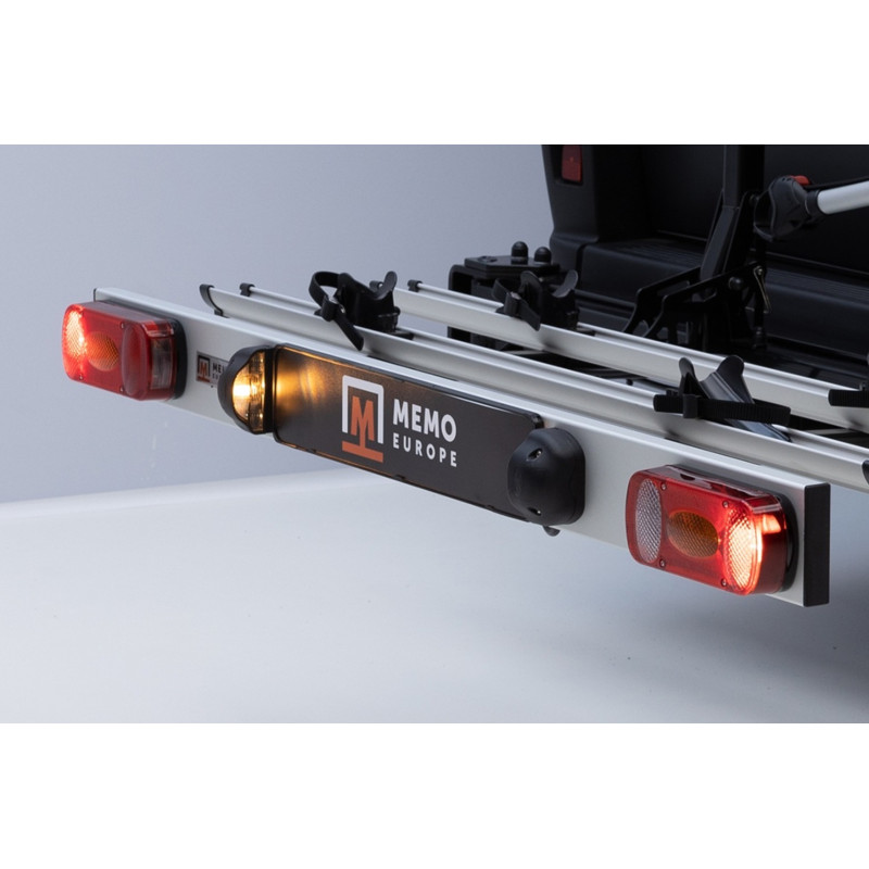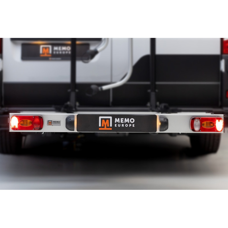 Ce support de rampe en aluminium est conçu pour le porte-vélos Van-Star, mais il est également compatible avec tous les autres porte-vélos de la marque Memo Europe. Il est équipé d’un ensemble de feux, d’un éclairage de plaque d’immatriculation et d’une prise à 13 broches. Le support mesure 140 cm de long et possède des embouts latéraux en plastique pour une finition soignée.