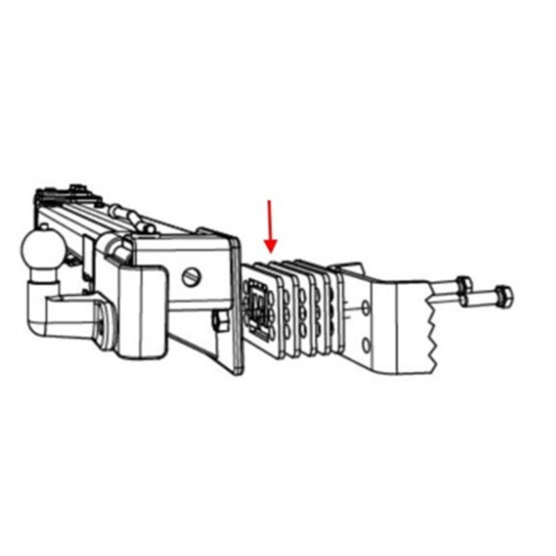 Cette plaque de 6 mm d’épaisseur est conçue pour les barres d’attelage et permet de régler la distance entre le châssis du véhicule et le VanSwing grâce à ses 4 trous d’ajustement.