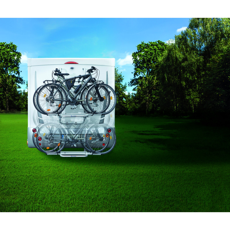 La capacité maximale est de 60 kg, ce qui permet de transporter 3 vélos classiques ou 2 e-bikes. Le porte-vélos pèse 20 kg.