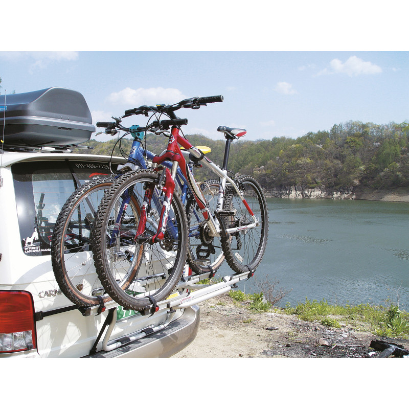 Porte-vélos à sangles, pour une installation facile sur les monospaces. N’est pas adapté pour les portes en polyester polyglace. Stable et robuste, aucun outil n’est nécessaire pour le poser. Doté de 6 solides sangles de qualité supérieure. Tubes ronds en aluminium anodisé