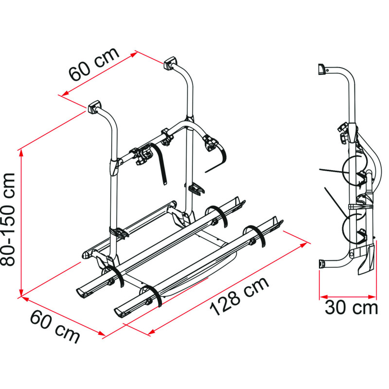 Porte-vélos télescopique. La version longue de la série Pro vous permet une grande précision de réglage et de ce fait, une plus grande stabilité.