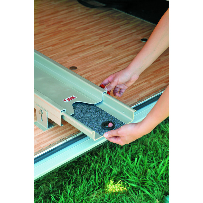 Conçu pour la simplicité et la sécurité, il intègre deux rails télescopiques en aluminium, légers et robustes. Son installation est un jeu d'enfant : il s'adapte à la plupart des soutes grâce à ses pieds réglables (8 à 11 cm) et se fixe facilement au plancher.