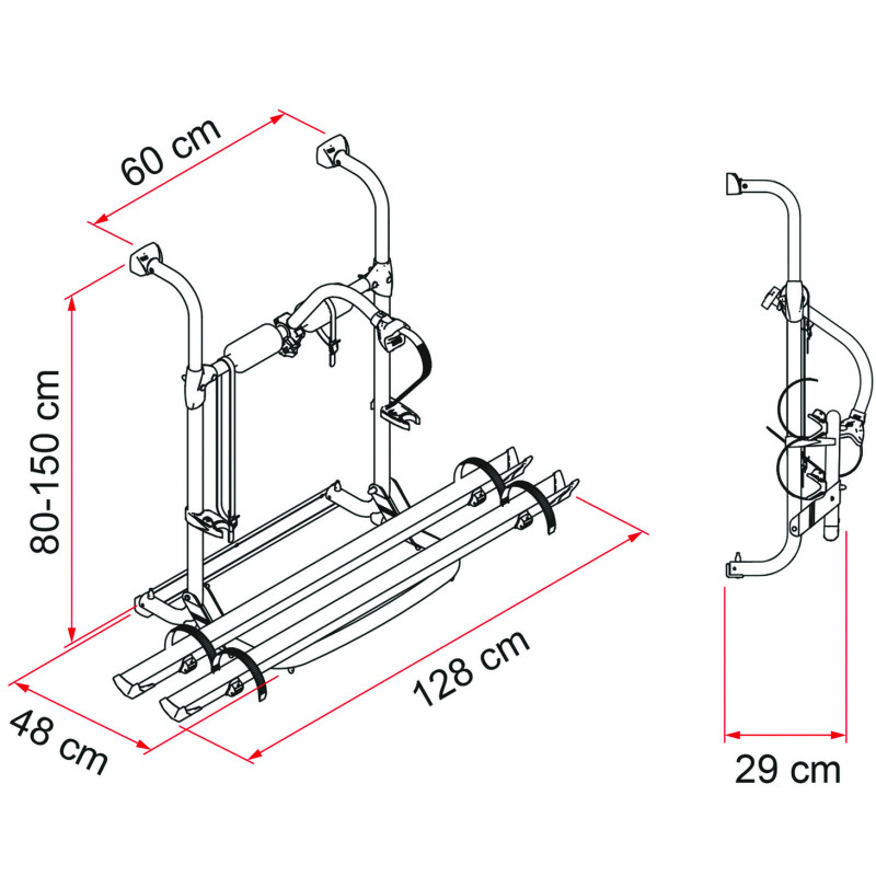 Caractéristiques similaires au modèle UL mais avec un porte-à-faux réduit, de seulement 48 cm. De série avec deux rails, transporte deux vélos maxi.