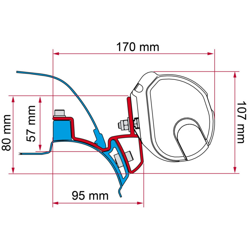 Conçu pour fixer un store Fiamma F35 sur un fourgon VW California avec rail d’origine, offrant un point de montage stable pour l’auvent lors des séjours en camping ou en itinérance.